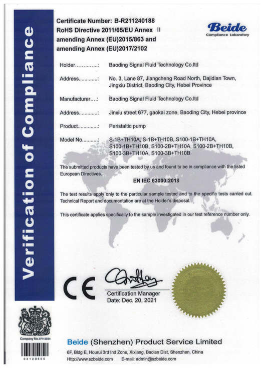保定思諾流體科技有限公司(Baoding Signal Fluid Technology Co., Ltd)成立于2011年,主要從事蠕動泵、蠕動泵OEM產品、蠕動泵灌裝系統的研發、生產與銷售,先后榮獲高新技術企業、河北省專精特新和國家級科技型中小企業等榮譽稱號。
