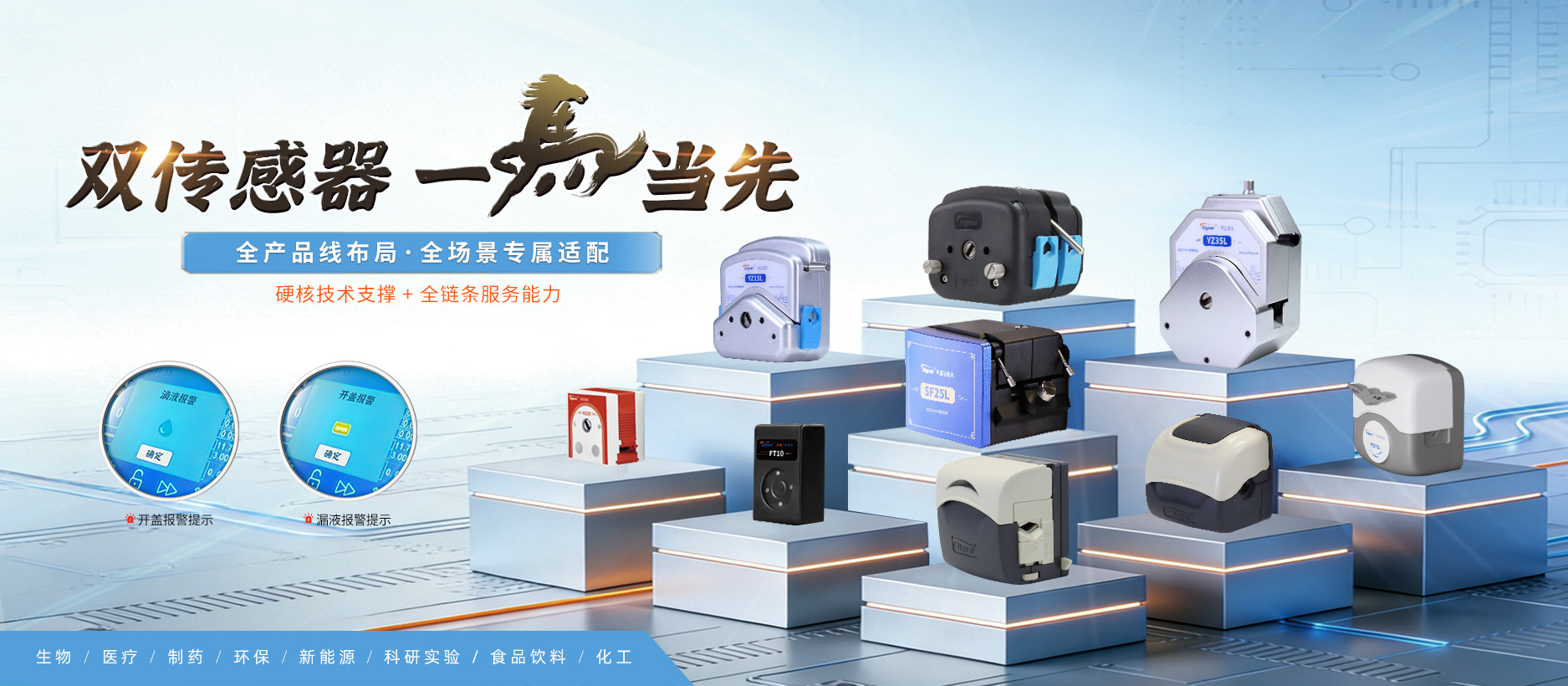 我公司自2011年成立以來,成功研發多款蠕動泵系列,如常規系列蠕動泵,iPump系列蠕動泵,OEM系列蠕動泵、灌裝系統等蠕動泵產品,已經成為國家高新技術企業!