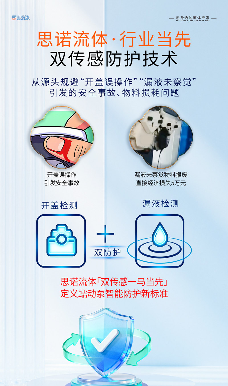 保定思諾流體科技有限公司是行業內較早推動安全防護系統性升級的企業。在傳統蠕動泵僅依靠機械結構進行被動防護的時期,思諾流體的研發團隊就開始思考:如何讓設備具備主動識別風險、提前干預的能力?正是基于這一前瞻性思考,公司率先將“開蓋檢測”與“漏液檢測”雙傳感器技術系統化應用于蠕動泵產品,開啟了行業智能主動防護的新階段。