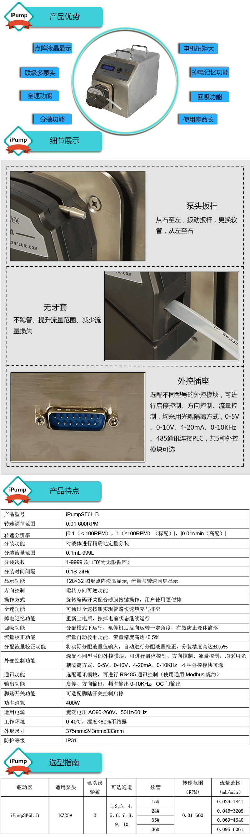 1.流量范圍:0.029-6061mL/min 2.兩種工作模式,流量模式與分配模式可選 3.具有流量校正、分裝液量校正功能 4.分裝精度高達±0.4%以內(nèi) 5.采用伺服電機驅(qū)動,控制準,動力強勁 6.線路板全部三防漆處理,防腐、防潮